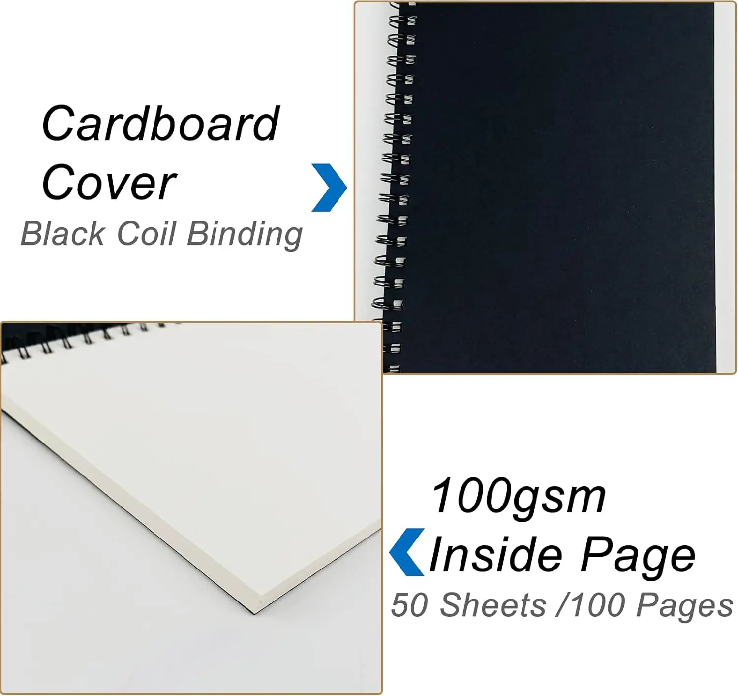 3-Pack Soft Cover Blank Spiral Notebook, 100 Pages, 7.5x5.1 Inch, Thick Paper for Sketching and Notes