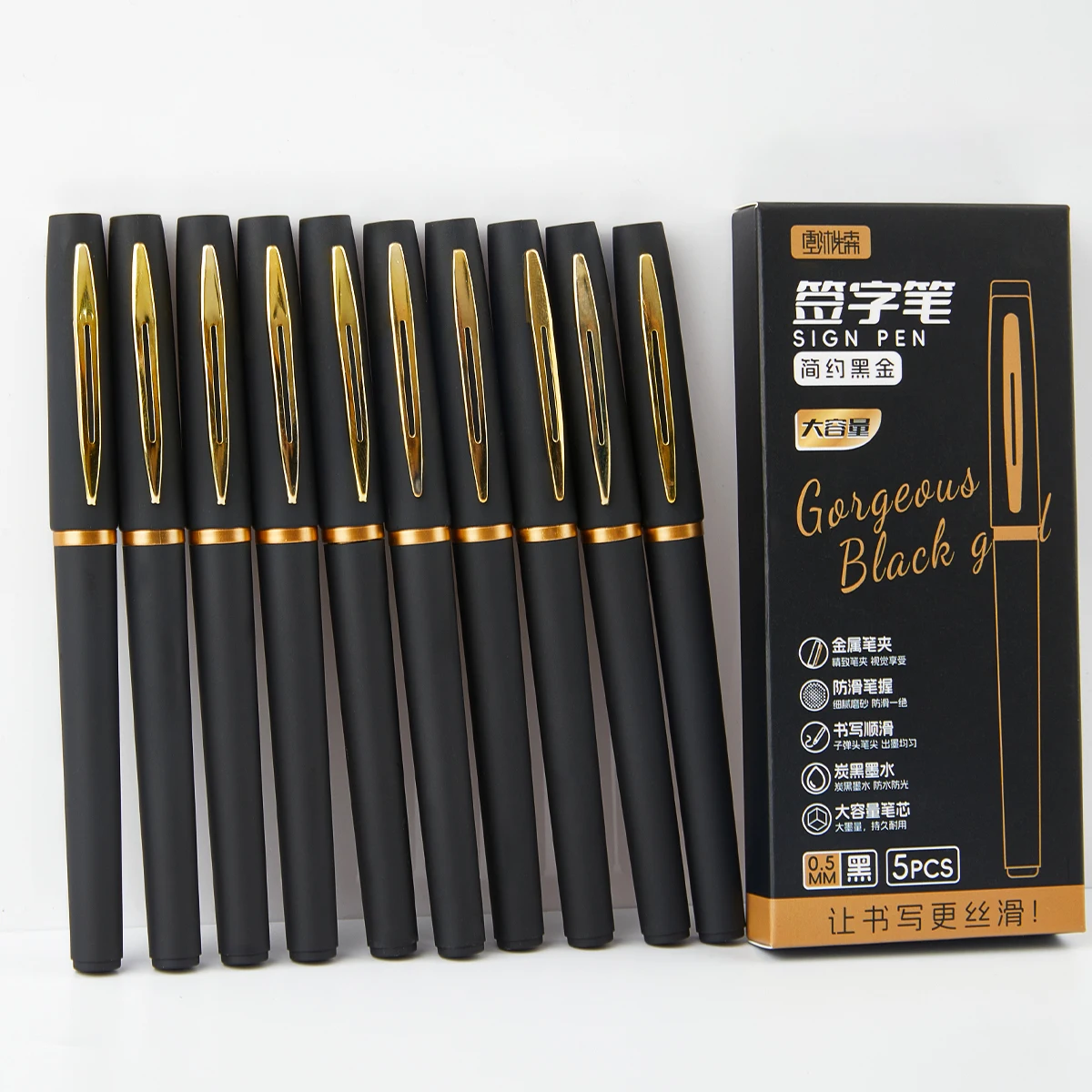 5pcs Large Capacity Gold Metal Pen Clips, 0.5mm/0.7mm/1.0mm, Multiple Specifications, Ink Signature Pens, Office Gel Pens