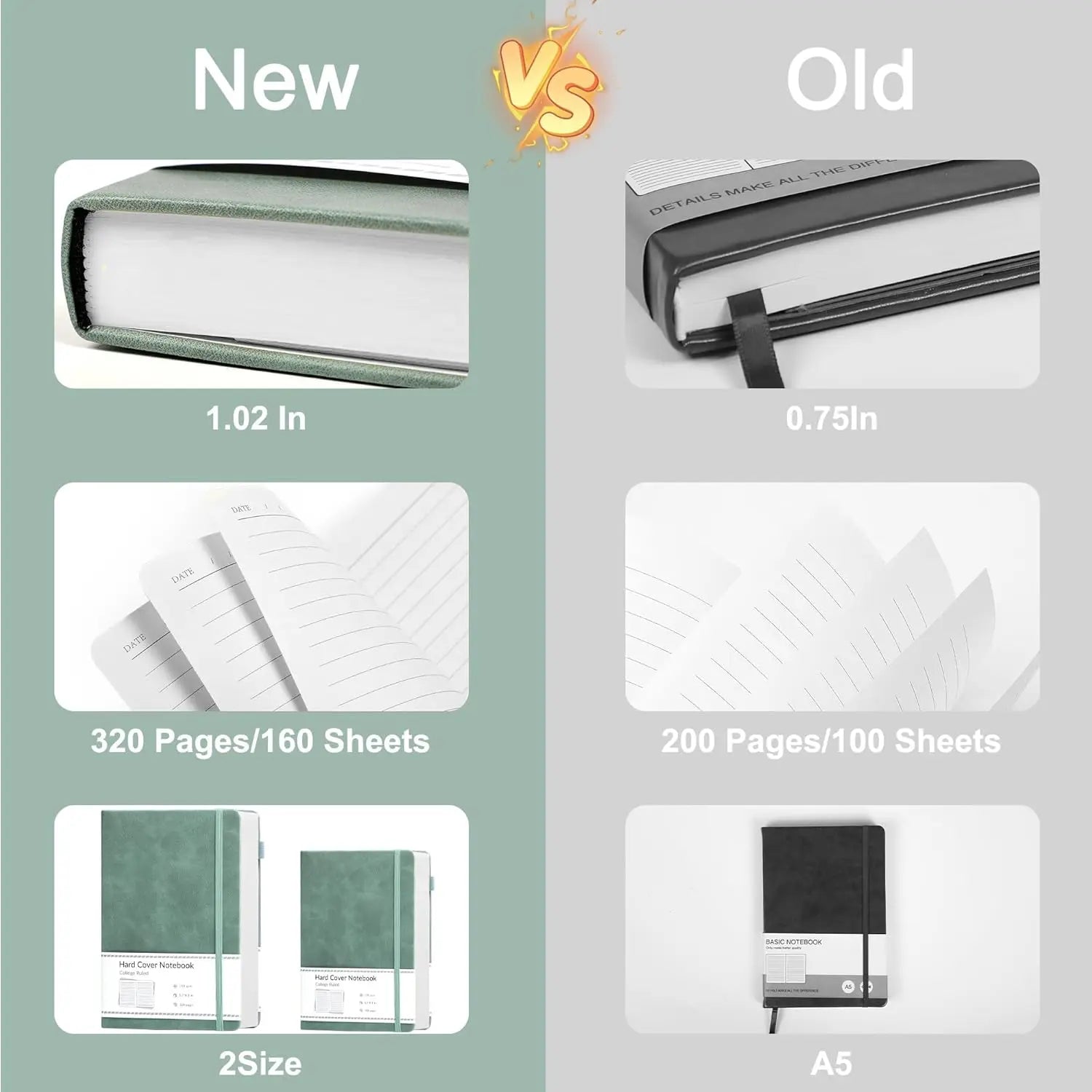 A5 Hardcover Leather Journal, 320 Pages Thick Paper for Writing, Work Note Taking Diary, Green