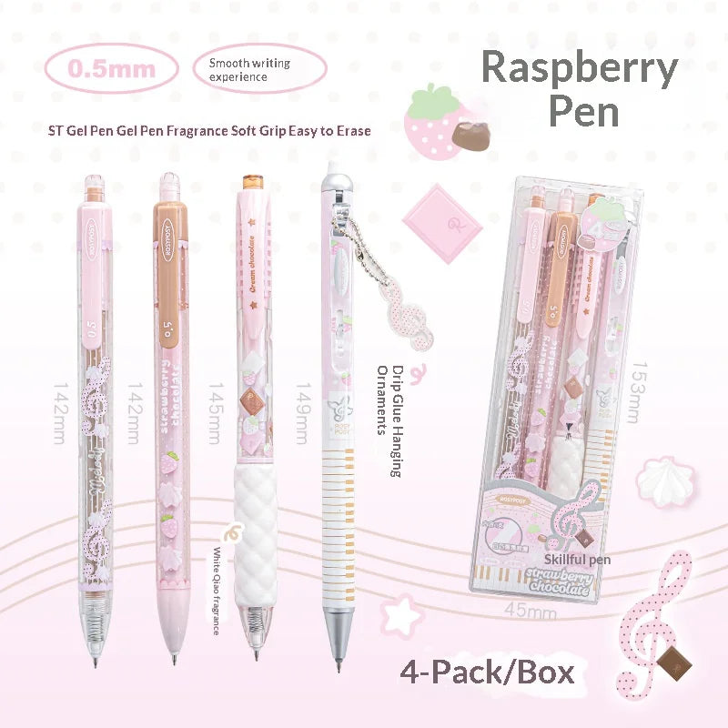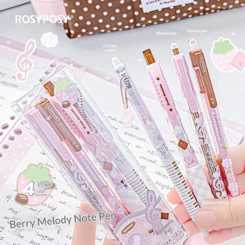 RosyPosy Berry Melody Note Pen Set 2 ST 0.5mm Gel Pens & 1 Erasable Pen & 1 Aromatic Soft Grip & 1 Free Pendant Value Stationery
