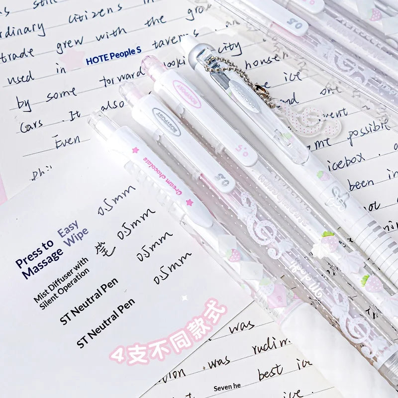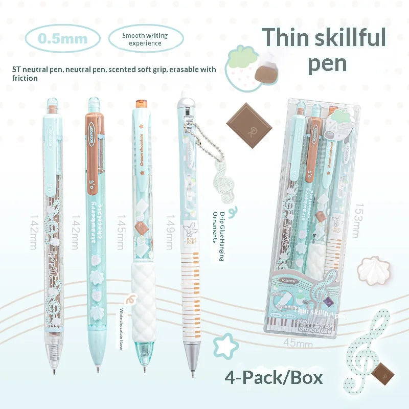 ✨Package Includes - 2 x ST Gel Pens (0.5mm, black), 1 x Aromatic Soft Grip (white chocolate scent, reusable), 1 x Push-type Erasable Pen, 1 x Free Note Pendant (scented)